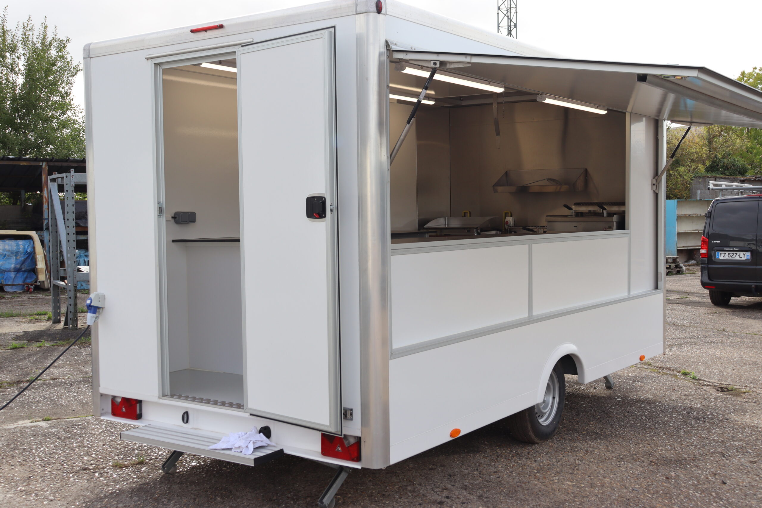 Une remorque de marché d’occasion idéale, pour les bouchers, traiteurs, fromagers, food-trucks… Parfaite pour répondre aux besoins spécifiques de votre commerce itinérant, elle offre praticité et fonctionnalité pour une expérience optimale sur le marché.